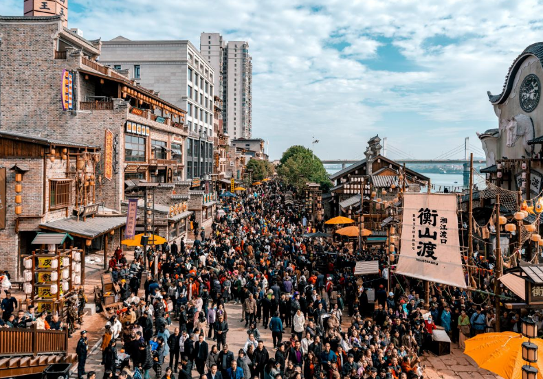 央视网消息 衡山渡开业首日客流量突破9万人次;半个月后,衡山渡总客流量突破百万人次,整体营业额超千万元;